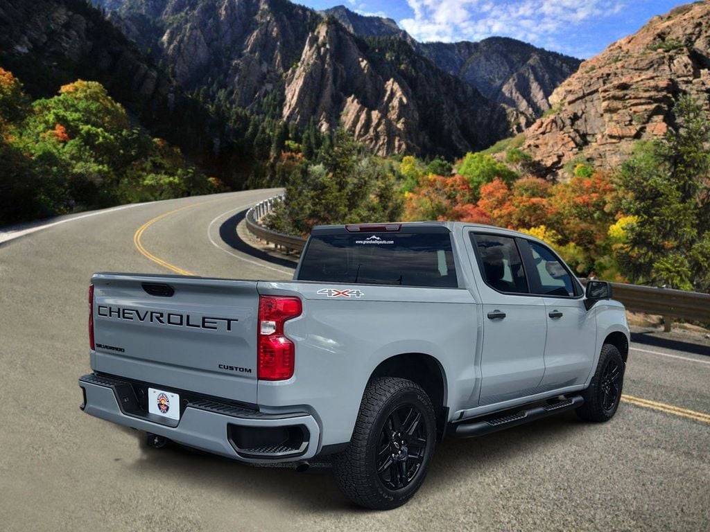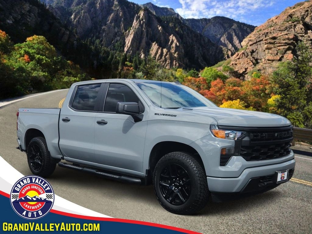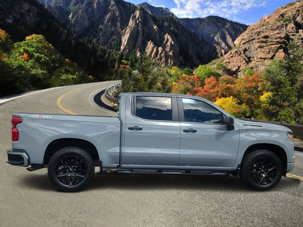 Versatile and capable, our One Owner, Accident Free 2025 Chevrolet Silverado 1500 Custom Crew Cab 4X4, featuring the Dark Essentials Package, welcomes you with style in Slate Gray Metallic! Motivated by a 2.7L TurboMax providing 310hp to an 8 Speed Automatic transmission to keep you on top of your game. This Four Wheel Drive truck also has a high-capacity suspension for heavier loads, and it returns nearly 21mpg on the highway. Upsized 20-inch alloy wheels help our Silverado 1500 stand proud as it welcomes you with the Dark Essentials Package's black nameplates/tailgate lettering, LED lighting, a power lock/release EZ Lift tailgate, LED bed lighting, a 2-inch receiver hitch, a spray-on Bedliner, and a 120V outlet.