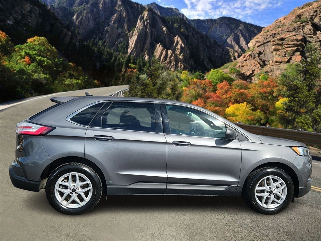 Born for adventure, our One Owner, Accident Free 2024 Ford Edge SEL AWD is built to look bold and aggressive in Carbonized Gray Metallic! Motivated by a TurboCharged 2.0 Liter EcoBoost 4 Cylinder offering 250hp to an 8 Speed Automatic transmission with a rotary gear shifter. Take command of this All Wheel Drive SUV to enjoy confident capability, responsive handling, and the ability to return nearly 28mpg on the highway. Sophisticated details help our Edge make a dramatic impression with signature LED lighting, fog lamps, heated power mirrors, dual integrated exhaust outlets, bright beltline moldings, and alloy wheels.