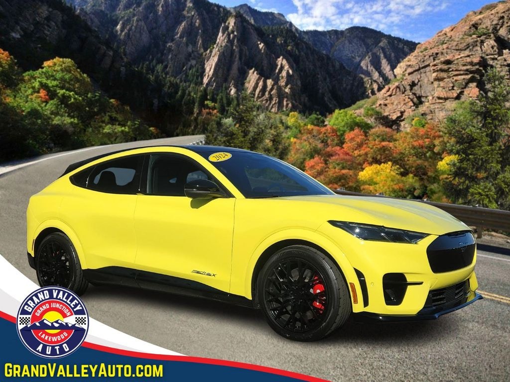 Reward yourself with our Accident Free 2024 Ford Mustang Mach-E GT AWD with daring good looks in Grabber Yellow! Powered by Dual Electric Motors delivering 480hp to a Single Speed Automatic transmission for charging to 60mph in a brisk 3.8 seconds. Brembo brakes and MagneRide damping deliver incredible handling, and this All Wheel Drive SUV carries a 91kWh battery to enable nearly 280 miles of EV range. Our Mustang Mach-E flaunts a bold design backed by LED lighting, sequential turn signals, a power liftgate, alloy wheels, and heated power-folding mirrors with Pony projection lamps.