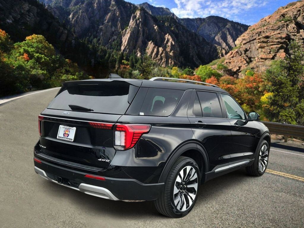 Our impressive One Owner, Accident Free 2025 Ford Explorer Platinum 4WD with the Lux Leather Pack is set for luxurious adventures in Agate Black Metallic! Motivated by a TurboCharged 2.3. Liter 4 Cylinder generating 300hp for a 10 Speed Automatic transmission. This Four Wheel Drive SUV also combines terrain management and a robust suspension for traveling tough trails, and it returns nearly 27mpg on the highway. Dramatic Explorer details include adaptive LED headlights, fog lamps, upsized 21-inch wheels, silver-painted skid-plate elements, panoramic sunroof, a power liftgate, chrome exhaust tips, and satin aluminum roof rails.