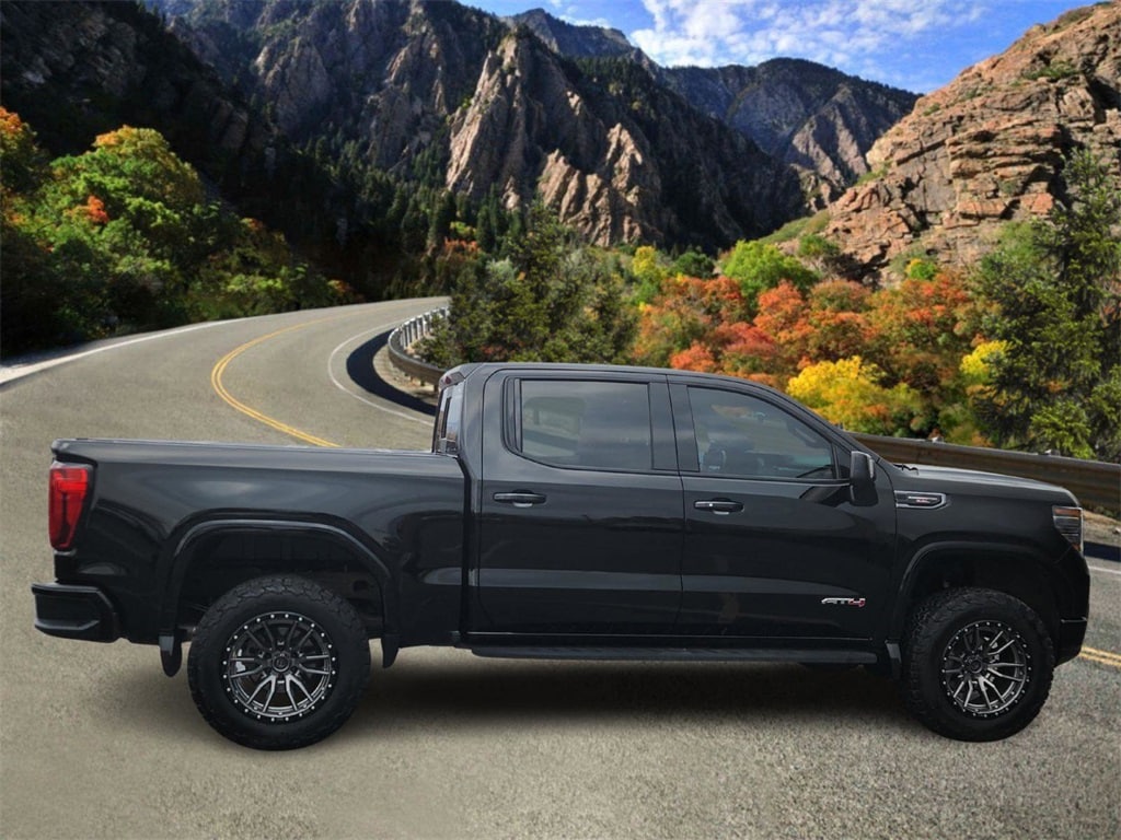 Our Accident Free 2022 GMC Sierra 1500 AT4 Crew Cab 4X4 with the Premium Pack is here to satisfy your hunger for adventure in Onyx Black! Powered by a 6.2 Liter V8 providing 420hp to a 10 Speed Automatic transmission for proud performance. Go even further with the off-road suspension, 2-inch factory lift, and Autotrac 2-speed transfer case, and this Four Wheel Drive truck sees nearly 19mpg on the highway. Enjoy rugged design and real-world capability with our Sierra's aggressive grille, LED lighting, bold custom wheels, red recovery hooks, MultiPro tailgate, running boards, tonneau cover, spray-on bedliner, ProGrade Trailering System, and our Premium Pack's high-clearance side steps.