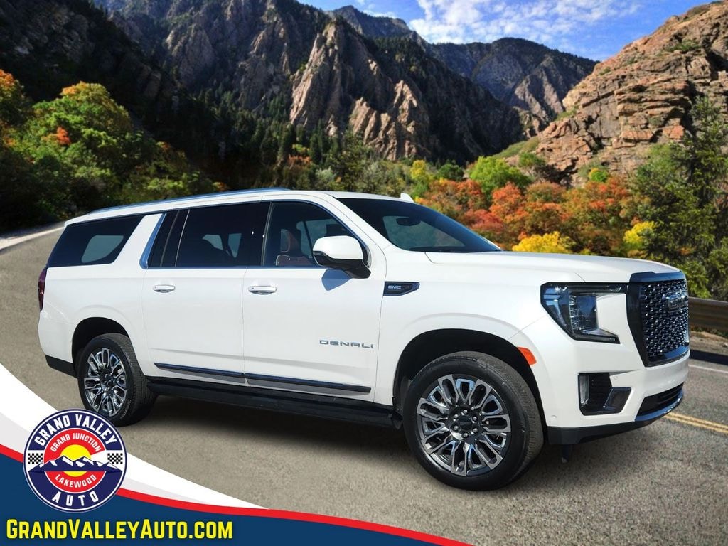 Our distinguished 2023 GMC Yukon XL Denali Ultimate 4WD excels at taking you further in White Frost Tricoat! Powered by a 6.2 Liter EcoTec3 V8 offering 420hp to a 10 Speed Automatic transmission for precise shifts. This Four Wheel Drive SUV also extends its capability with features like Magnetic Ride Control and an adaptive air suspension, and it sees nearly 19mpg on the highway. The pinnacle of Pro Grade styling, our Yukon XL has 22-inch wheels, LED lighting, a panoramic sunroof, power running boards, bright roof rails, and a hands-free liftgate.