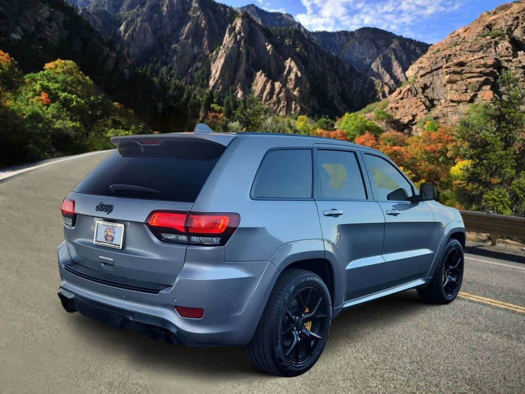 Unchain our 2018 Jeep Grand Cherokee Trackhawk 4X4 with a Signature Leather Interior and you're in for ferocious performance that makes this the supercar of SUVs in Billet Silver Metallic! Motivated by a SuperCharged 6.2 Liter HEMI SRT V8 that serves up an earth-shaking 707hp paired to a paddle-shifted 8 Speed Automatic transmission designed to rocket you 60mph in just 3.5 seconds with a top speed of 180mph. Unrelenting off-road and on the track with high-performance hardware that includes Brembo brakes and an active damping suspension, this Four Wheel Drive SUV sees nearly 17mpg on the highway. It commands your attention with LED lighting, 20-inch Black Satin alloy wheels, yellow brake calipers, a panoramic sunroof, and black-chrome quad exhaust tips.