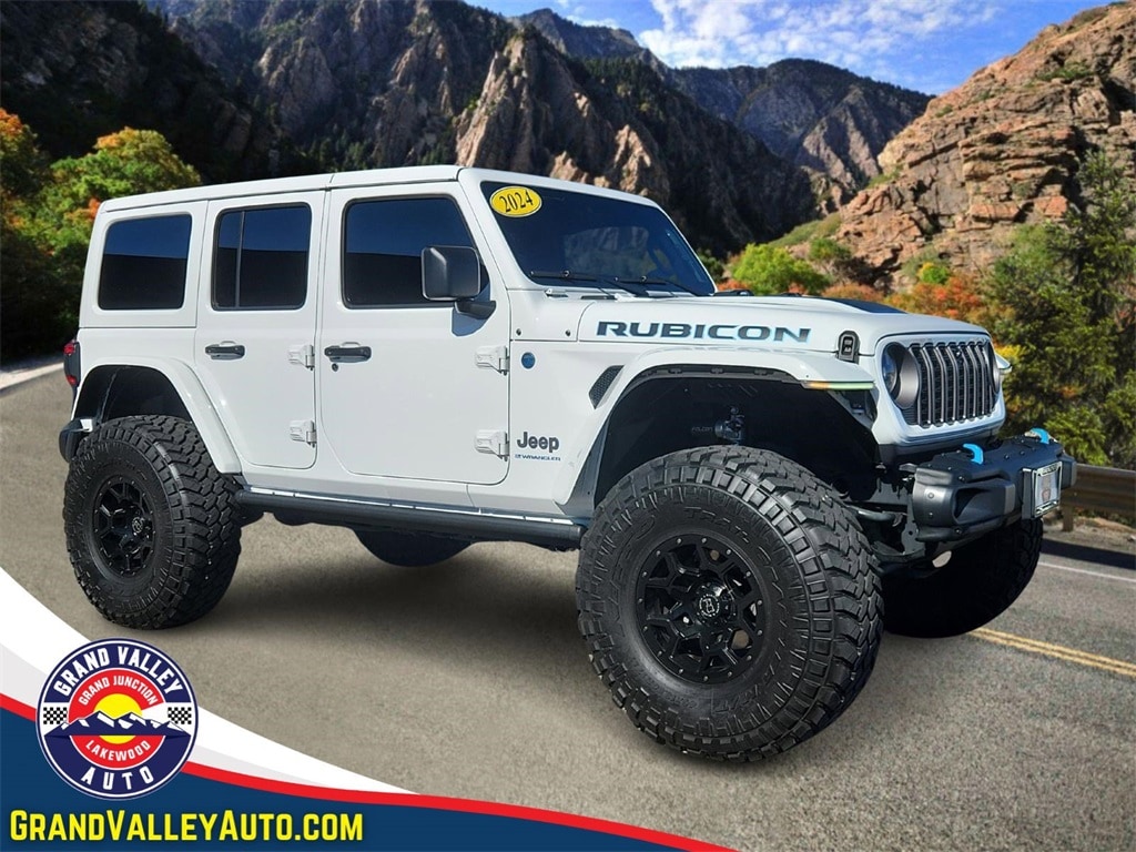 Take your next adventure in our One Owner, Accident Free 2024 Jeep Wrangler 4xe Rubicon X 4X4 that's dressed to impress in Bright White Clearcoat! Powered by a TurboCharged 2.0 Liter 4 Cylinder and 2 Electric Motors offering a combined 375hp for an 8 Speed Automatic transmission. The result is a fierce Four Wheel Drive SUV that scores nearly 20mpg combined in gas-hybrid mode, goes nearly 22 miles in EV mode, and tackles the trails either way with a heavy-duty Rock-Trac 4WD system and Tru-Lock axles. Daring and dramatic, our Wrangler looks remarkably rugged with a three-piece removable hardtop, LED lighting, steel bumpers, removable doors, a vented hood, rock rails, deep tinted glass, and prominent custom wheels.