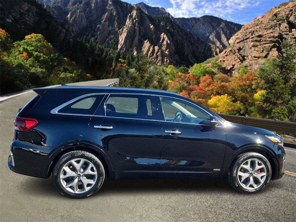 Our sporty 2019 Kia Sorento SX AWD shown off in Ebony Black boasts a dynamic blend of performance and refinement! Powered by an impressive 3.3 Liter V6 that offers 290hp tethered to a 6 Speed Sportmatic Automatic transmission for great passing maneuvers. You'll find this All Wheel Drive SUV quiet and comfortable so you can set off for those family adventures in comfort while scoring nearly 25mpg on the highway. Sleek and sophisticated, our Sorento SX turns heads with amazing 19-inch alloy wheels, privacy glass, a dark metallic grille, and long swept-back projector beam headlights.
