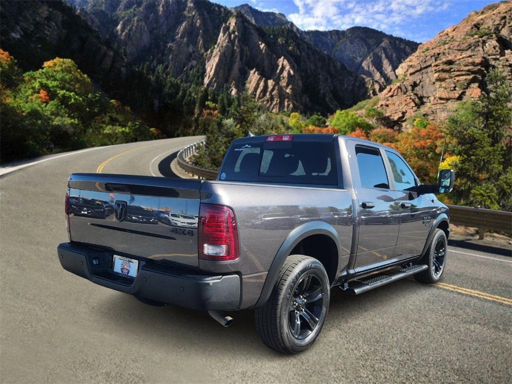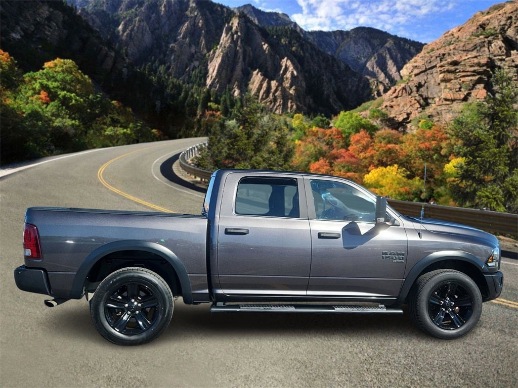Capable and confident, our One Owner, Accident Free 2023 RAM 1500 Classic Warlock Crew Cab 4X4 is ready to clock in on your next big job in Granite Crystal Metallic! Powered by a 3.6 Liter Pentastar V6 offering 305hp to an 8 Speed Automatic transmission to help handle your towing and hauling needs. This Four Wheel Drive truck is also easy to maneuver for taking on more challenges, and it scores nearly 23mpg on the highway. An aggressive black grille, 20-inch black alloy wheels, a black powder-coated rear bumper, matching wheel flares/accents, a Class III bumper hitch, spray on bedliner, running boards, and heated power mirrors add style and substance to this strong truck.