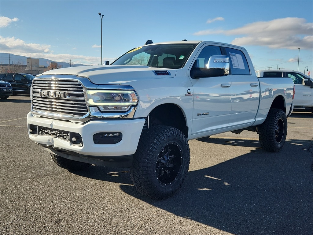 Dominate with Diesel power in our One Owner, Accident Free 2024 RAM 2500 Laramie Crew Cab 4X4 with the Level 1 Package, which welcomes upscale features in Bright White Clearcoat! Motivated by a TurboCharged 6.7 Liter Cummins Diesel 6 Cylinder serving up 370hp and 850lb-ft of torque to a 6 Speed Automatic transmission for job-friendly payload and trailer ratings. This Four Wheel Drive truck also moves with a heavy-duty suspension for a refined ride even when pulling at your limits. Strong and stylish, our RAM boasts a distinctive chrome billet grille, 18-inch polished aluminum wheels, heated power trailer mirrors, a 115V/400W outlet, remote tailgate release, and LED lighting for its Class V receiver hitch.